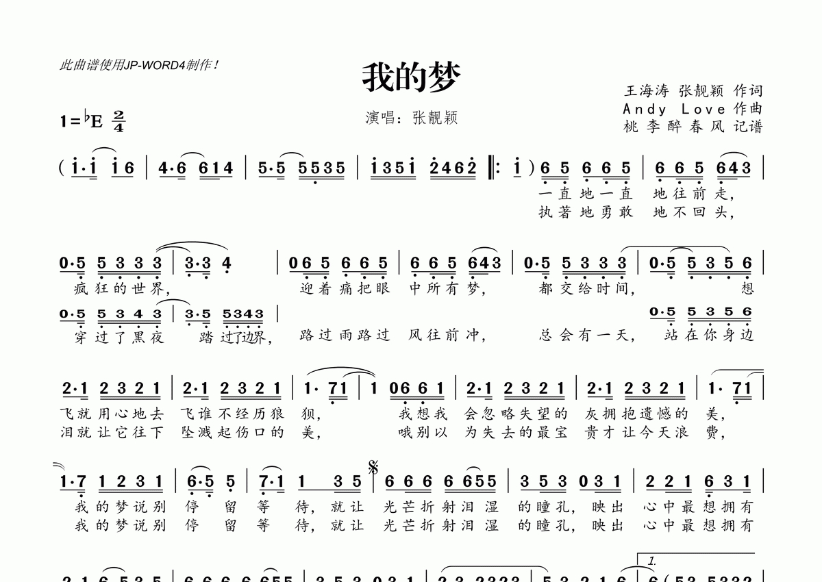 《我的梦》是张靓颖演唱的一首歌曲,拍号为2/4拍,这份简谱共有一张高清图谱,图谱由 @桃李醉春风 编配上传。