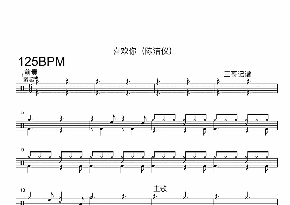 陈洁仪《喜欢你》鼓谱 - 架子鼓谱