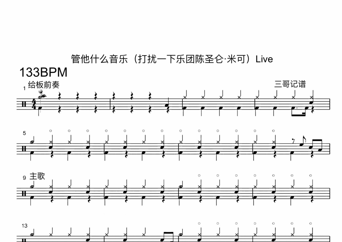 (打扰一下乐团陈圣仑·米可)《管他什么音乐》鼓谱 - 架子鼓谱