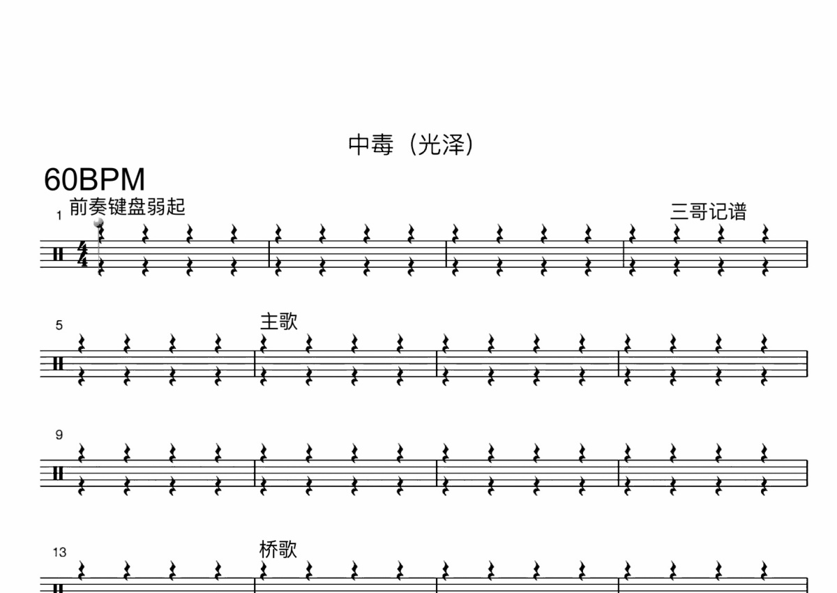 光泽《中毒》鼓谱 - 架子鼓谱