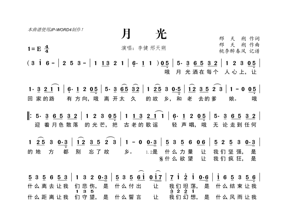 李健&邢天朔《月光》简谱