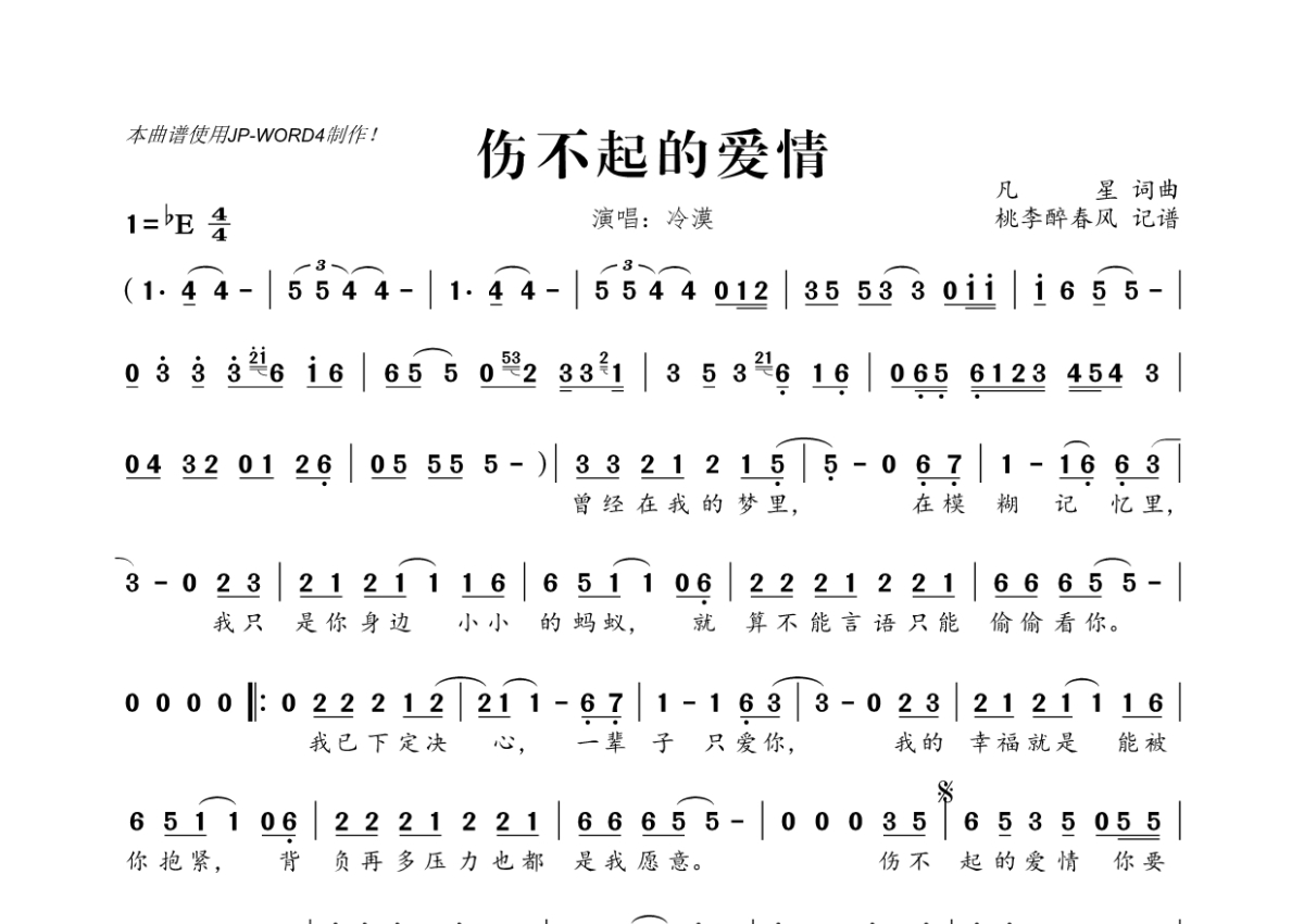 《伤不起的爱情》是冷漠演唱的一首歌曲,拍号为4/4拍,这份简谱共有一张高清图谱,图谱由 @桃李醉春风 编配上传。