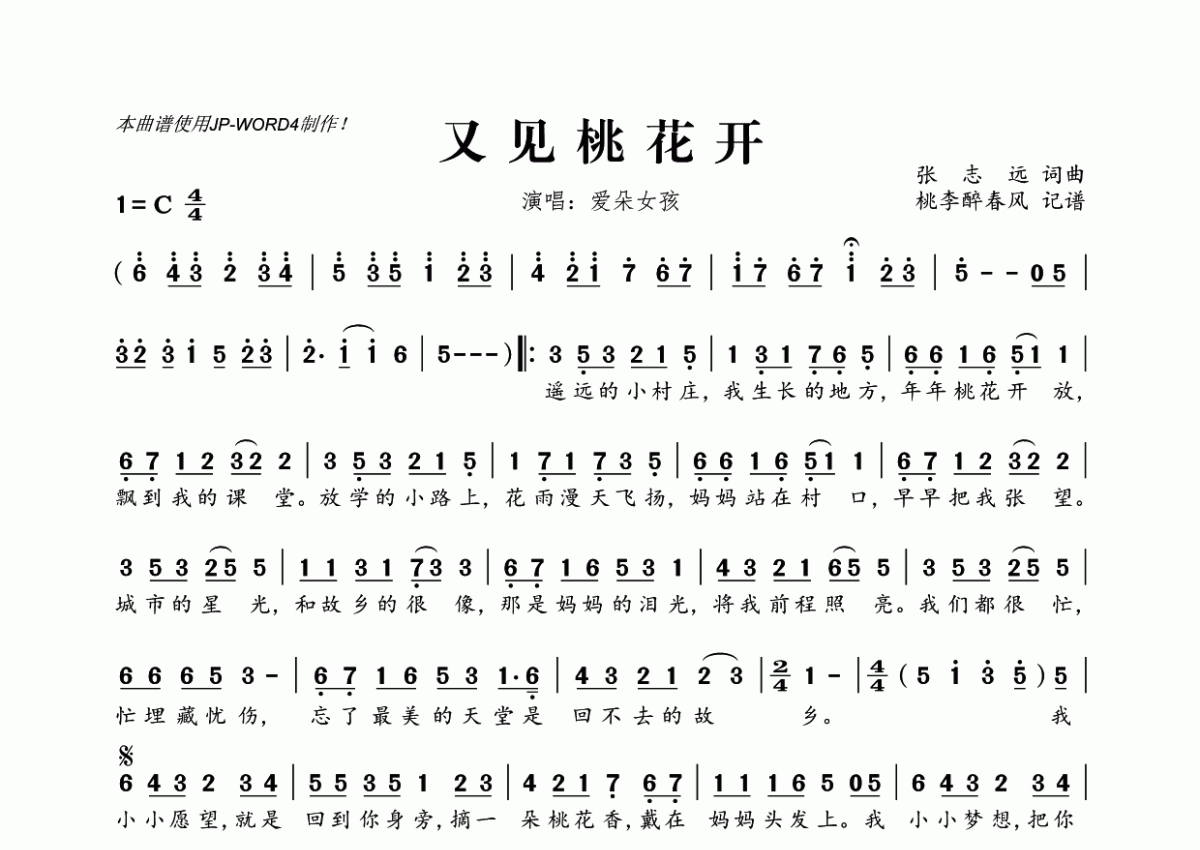 爱朵女孩《又见桃花开》简谱