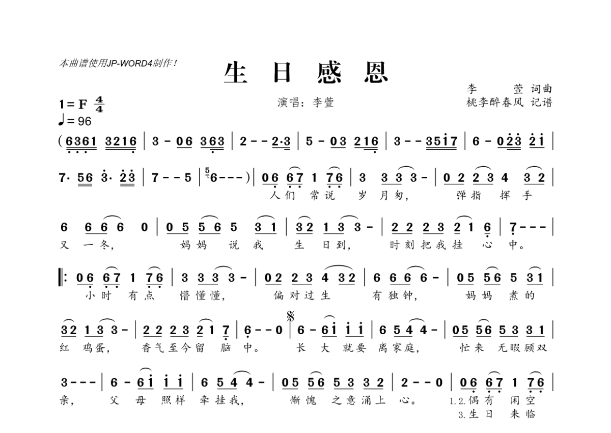 李萱《生日感恩》简谱
