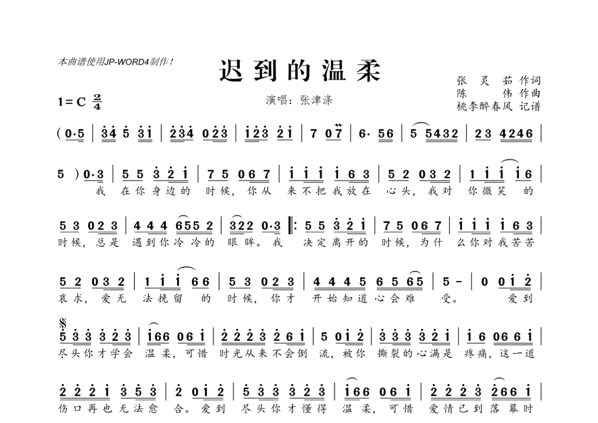 张津涤《迟到的温柔》简谱