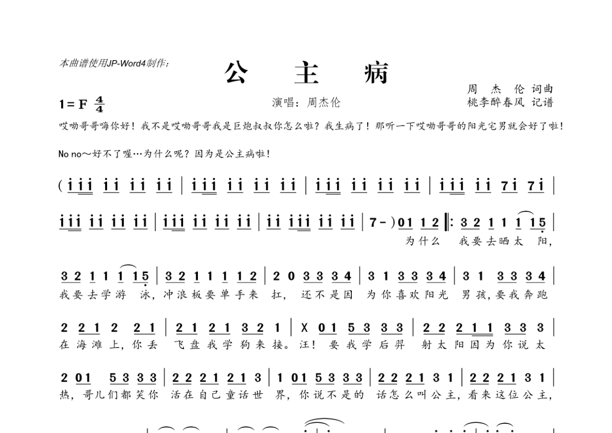 周杰伦《公主病》简谱