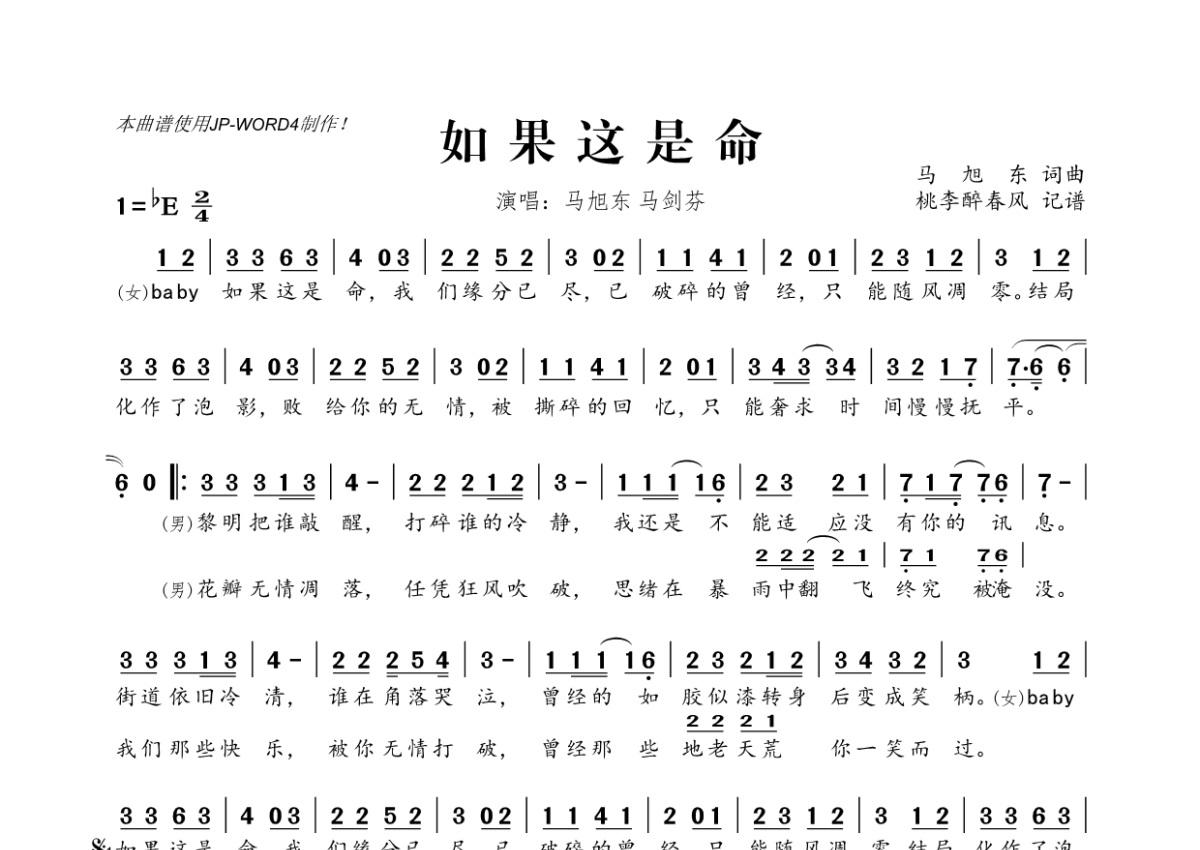 《如果这是命》是马旭东&马剑芬演唱的一首歌曲,拍号为2/4拍,这份简谱共有一张高清图谱,图谱由 @桃李醉春风 编配上传。
