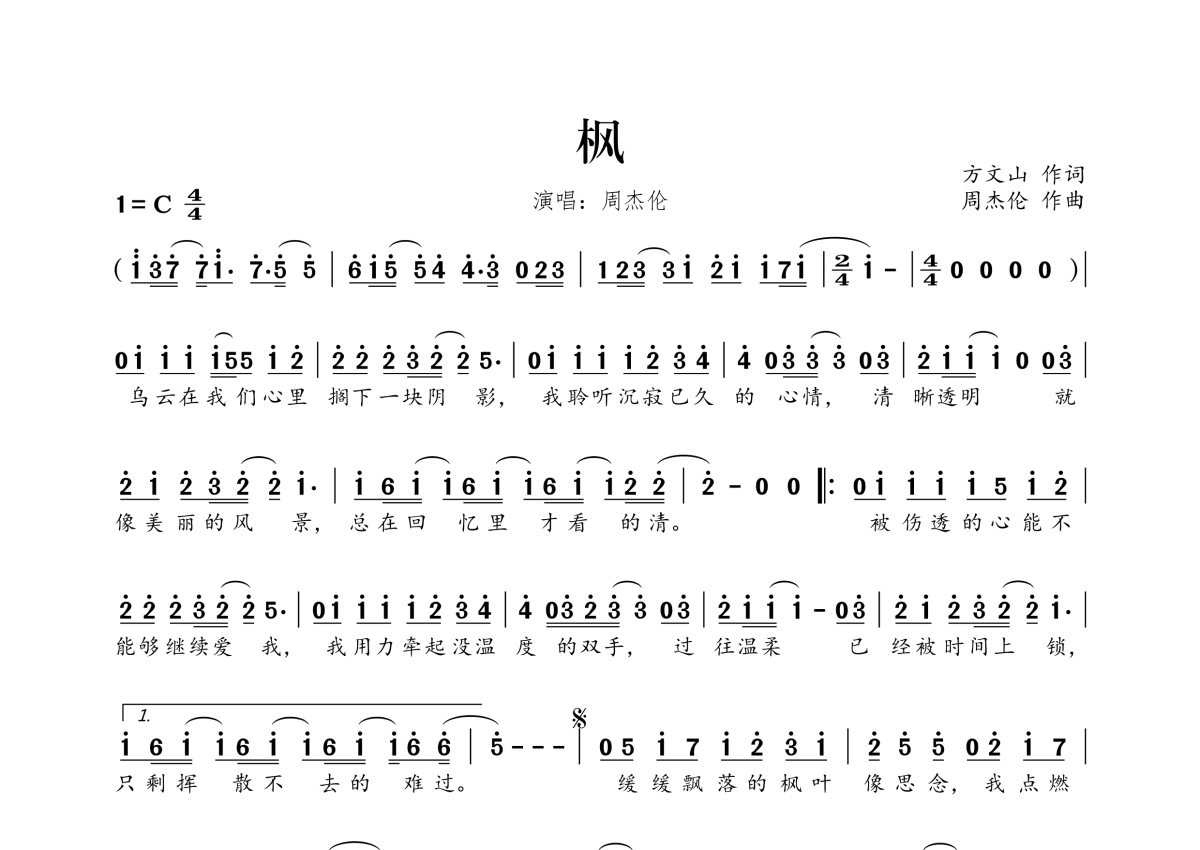 周杰伦《枫》简谱