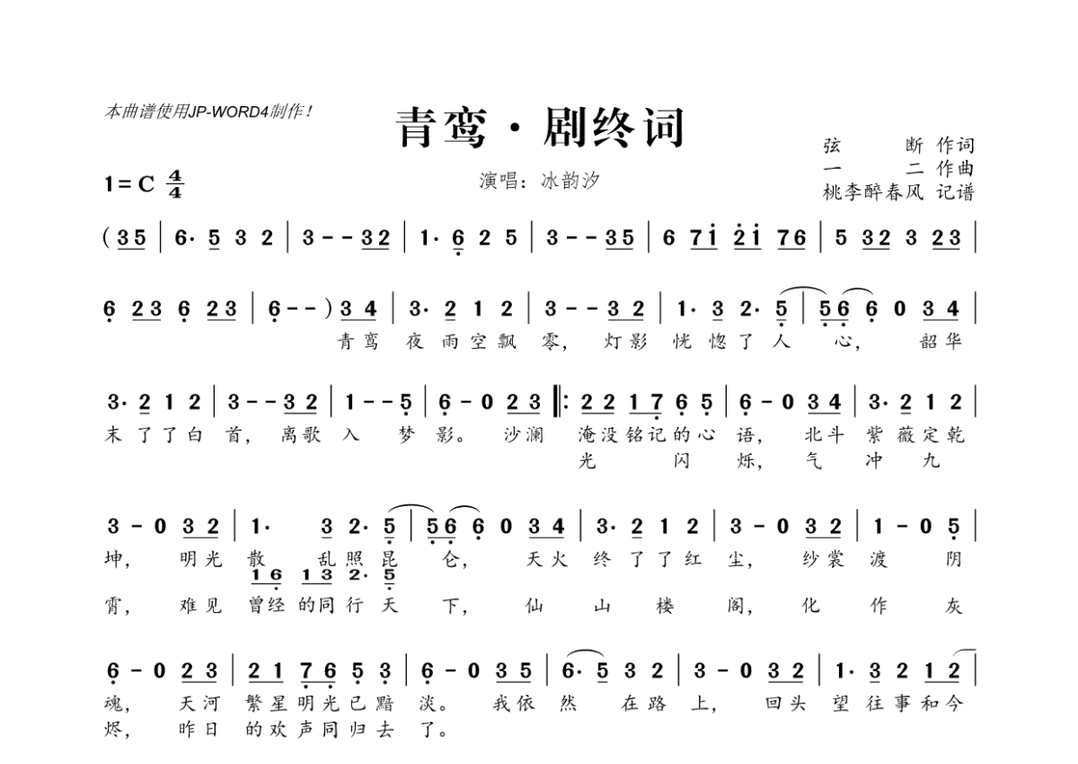 冰韵汐《青鸾·剧终词》简谱