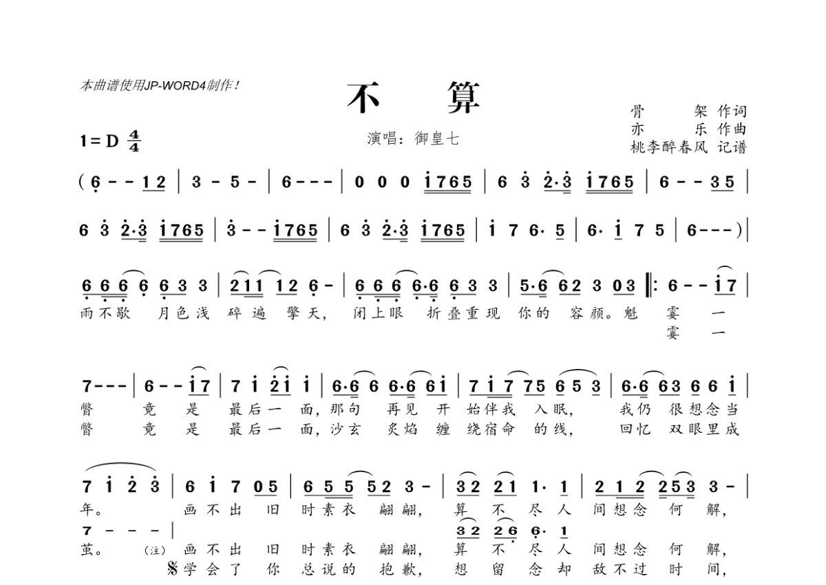御皇七《不算》简谱