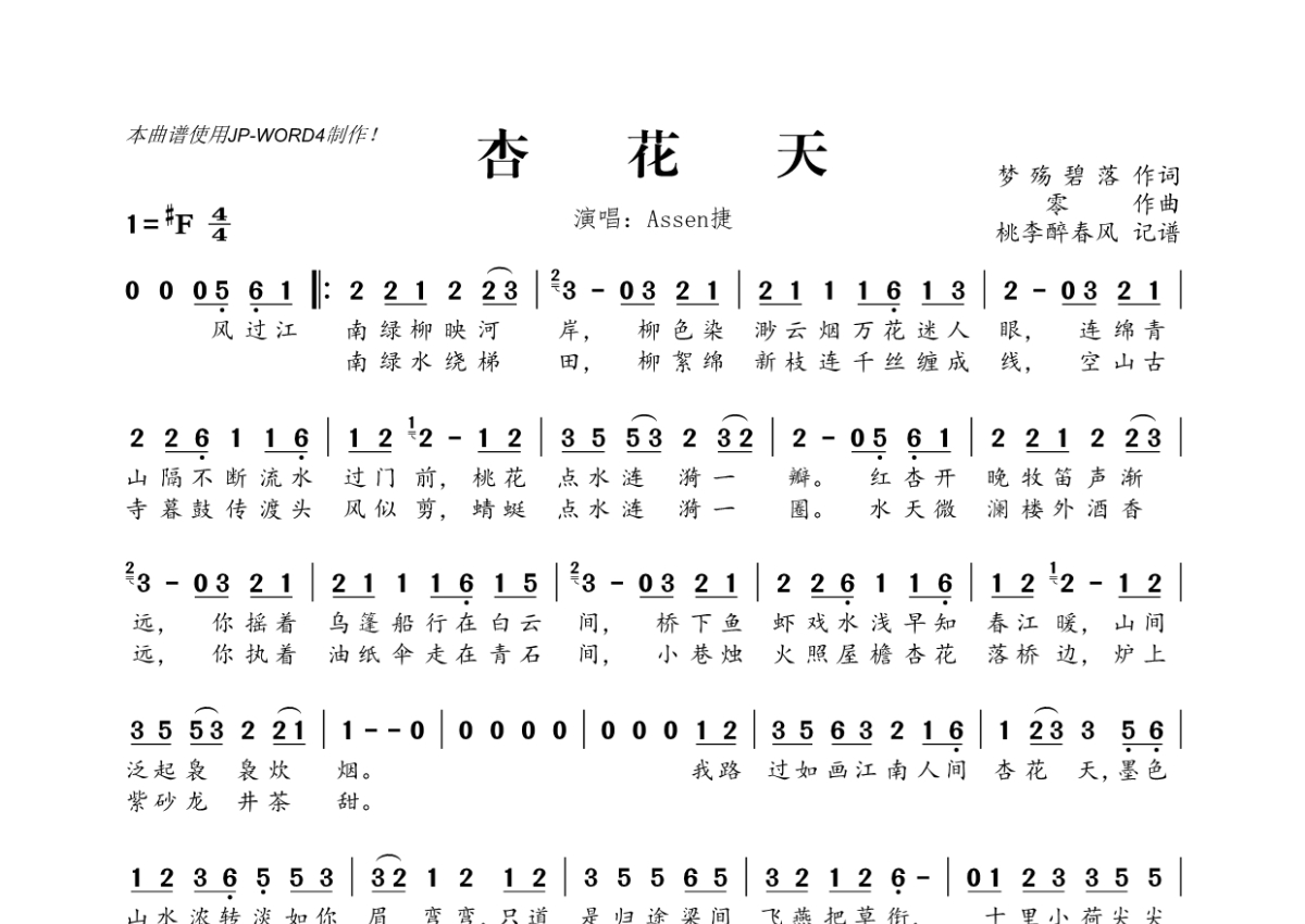 Assen捷《杏花天》简谱