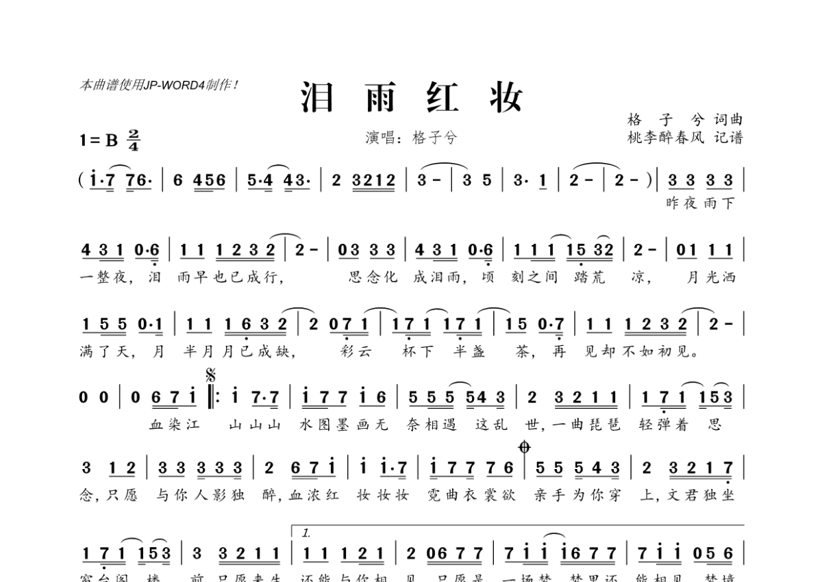 格子兮《泪雨红妆》简谱