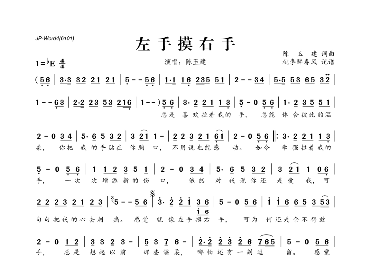 陈玉建《左手摸右手》简谱