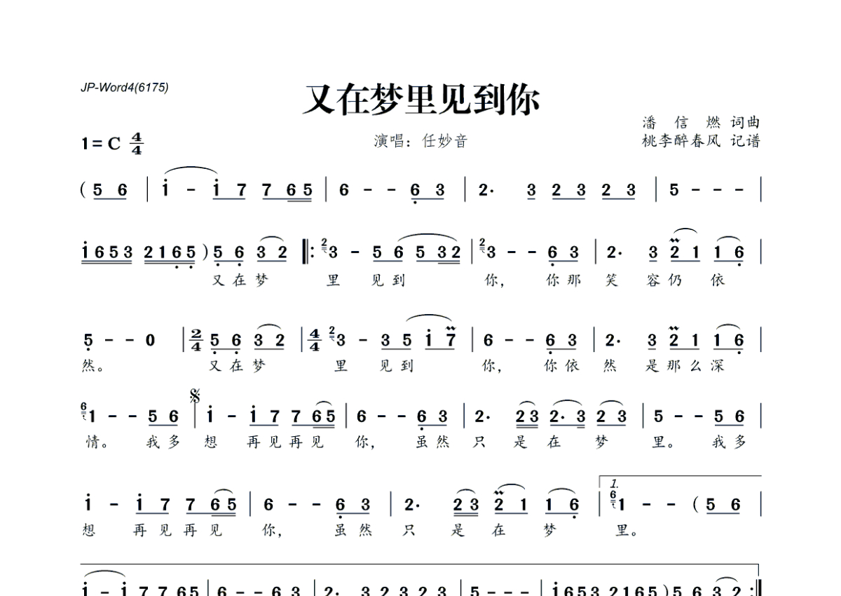 任妙音《又在梦里见到你》简谱