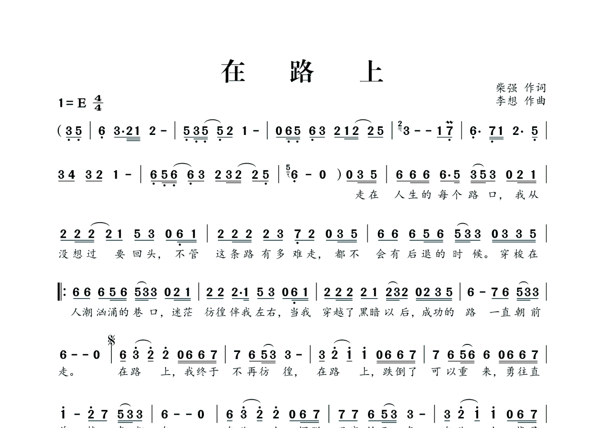 《在路上》,拍号为4/4拍,这份简谱共有一张高清图谱,图谱由 @桃李醉春风 编配上传。