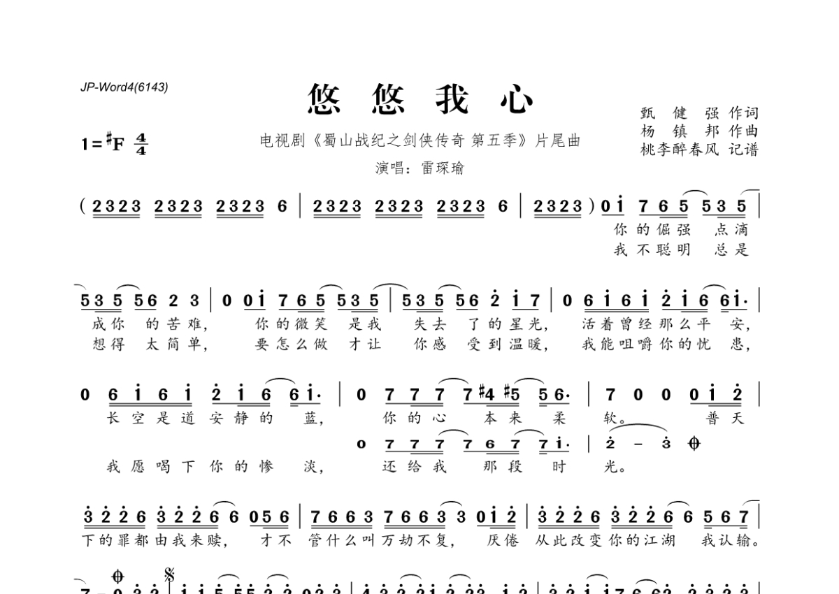 《悠悠我心》是雷深如演唱的一首歌曲,拍号为4/4拍,这份简谱共有一张高清图谱,图谱由 @桃李醉春风 编配上传。