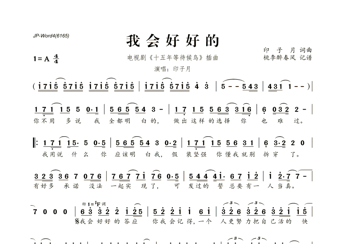 《我会好好的》是印子月演唱的一首歌曲,拍号为4/4拍,这份简谱共有一张高清图谱,图谱由 @桃李醉春风 编配上传。