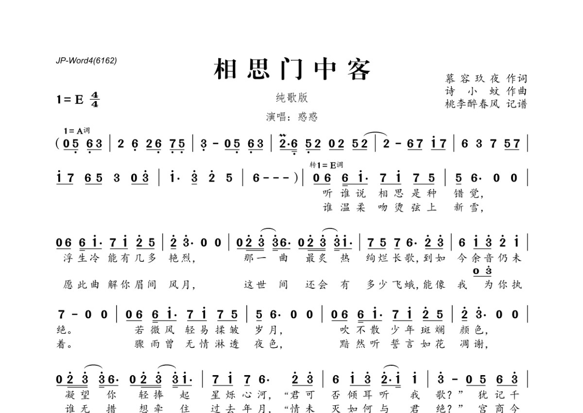惑惑《相思门中客》简谱