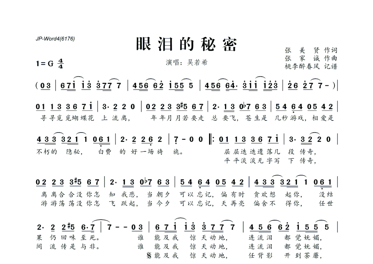 吴若希《眼泪的秘密》简谱