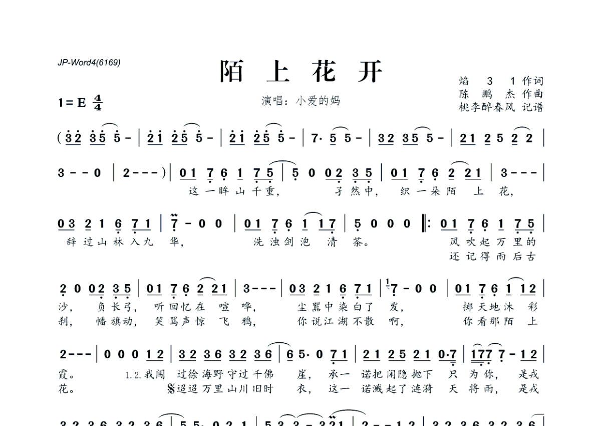 《陌上花开》是小爱的妈演唱的一首歌曲,拍号为4/4拍,这份简谱共有一张高清图谱,图谱由 @桃李醉春风 编配上传。
