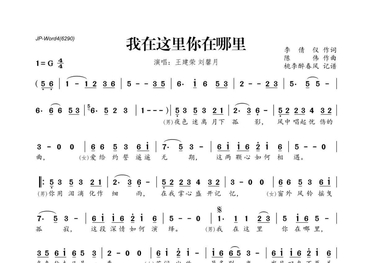 王建荣&刘馨月《我在这里你在哪里》简谱