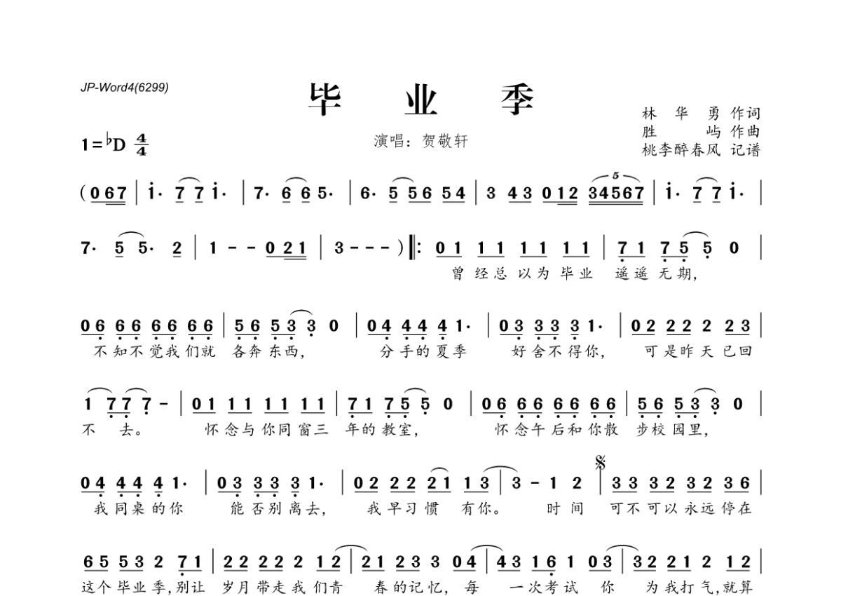 贺敬轩《毕业季》简谱