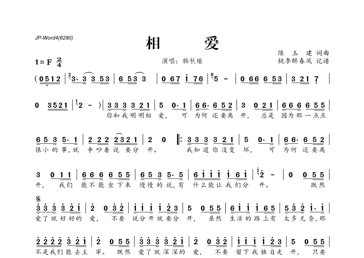 韩秋瑜《相爱》简谱