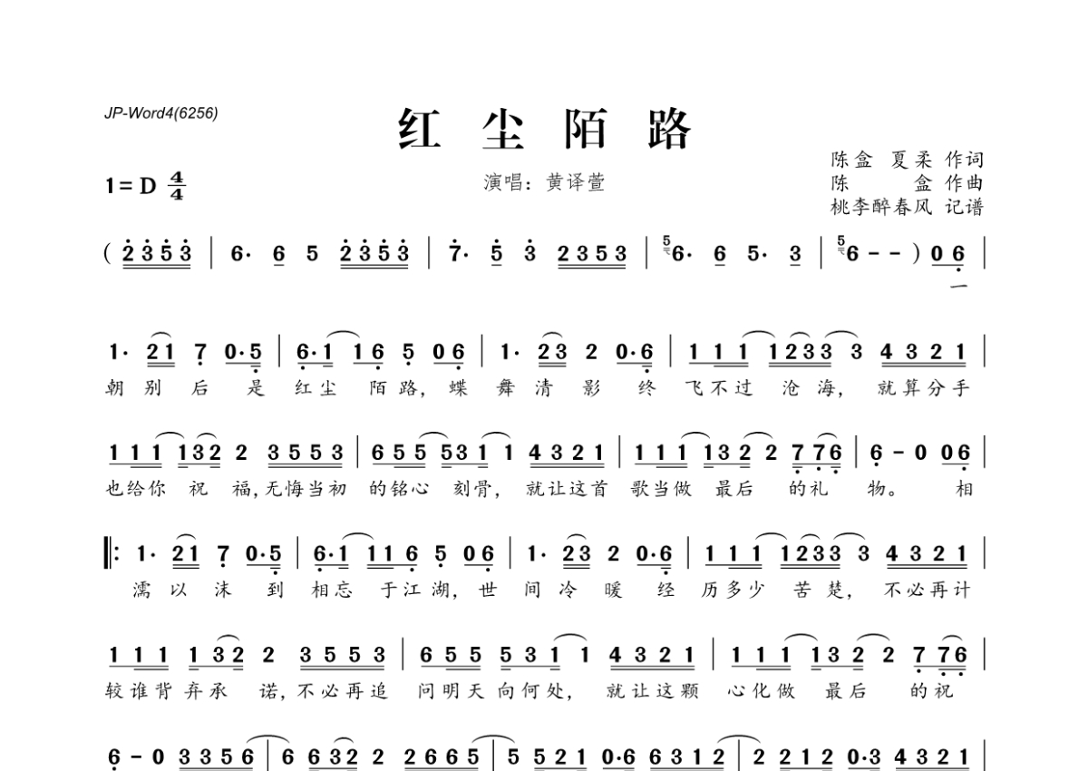 黄译萱《红尘陌路》简谱