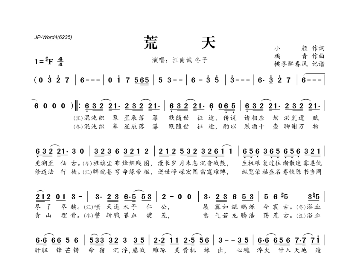 冬子&江南诚《荒天》简谱