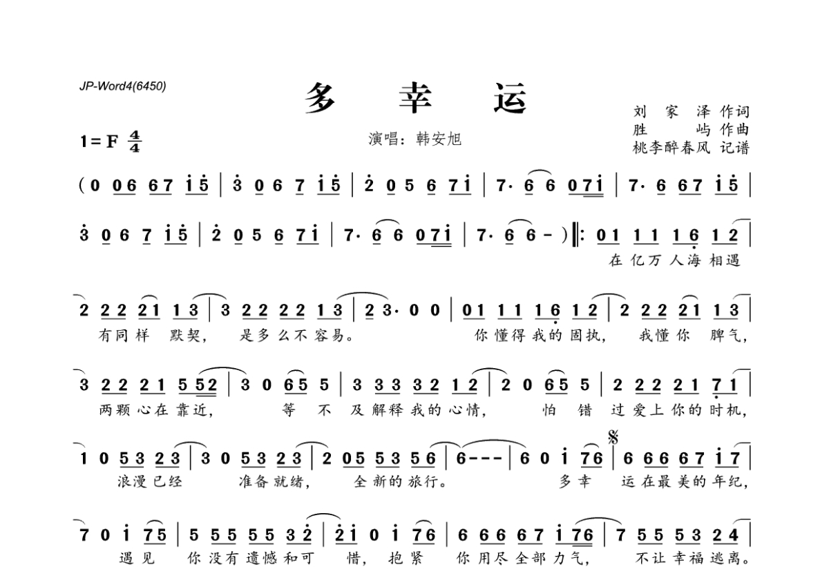 韩安旭《多幸运》简谱