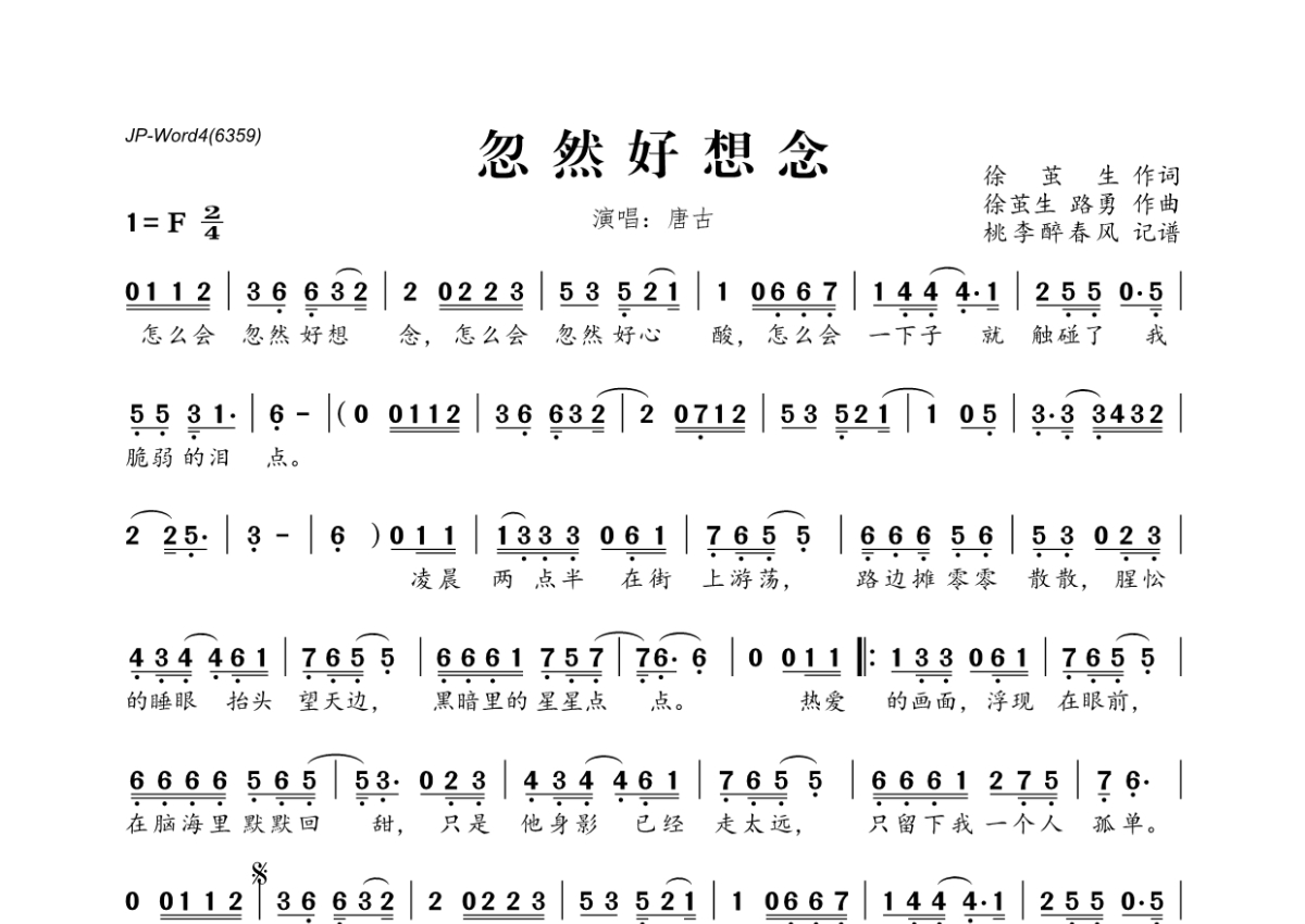 《忽然好想念》是唐古演唱的一首歌曲,拍号为2/4拍,这份简谱共有一张高清图谱,图谱由 @桃李醉春风 编配上传。