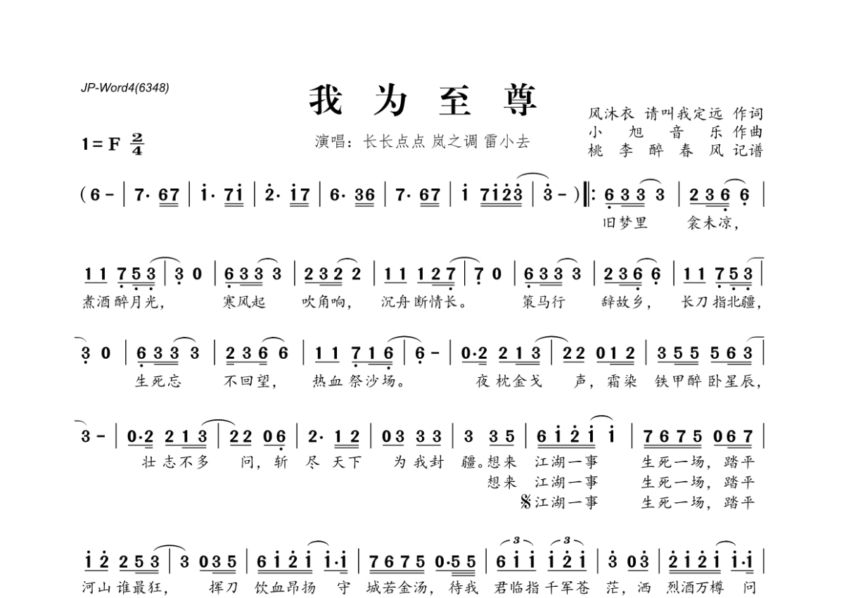 长长点点&岚之调&雷小去《我为至尊》简谱