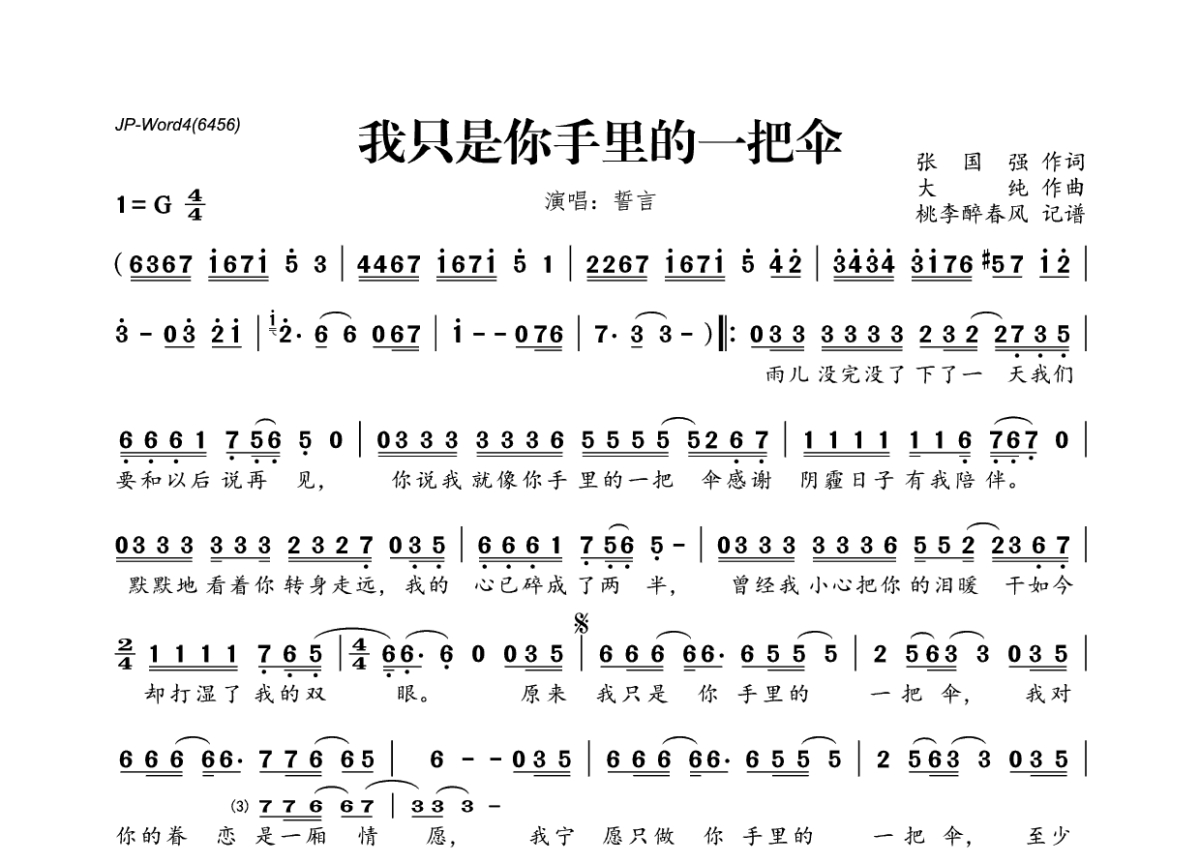 誓言《我只是你手里的一把伞》简谱