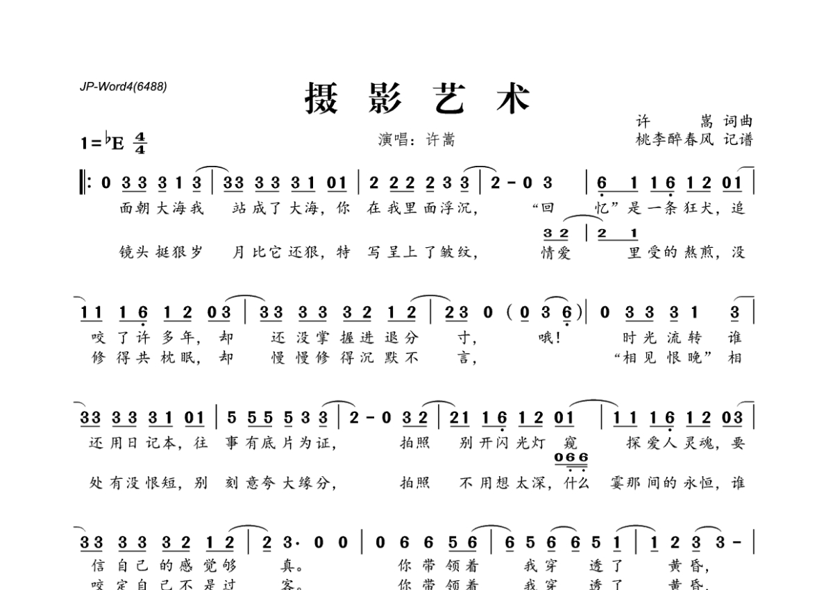 许嵩《摄影艺术》简谱