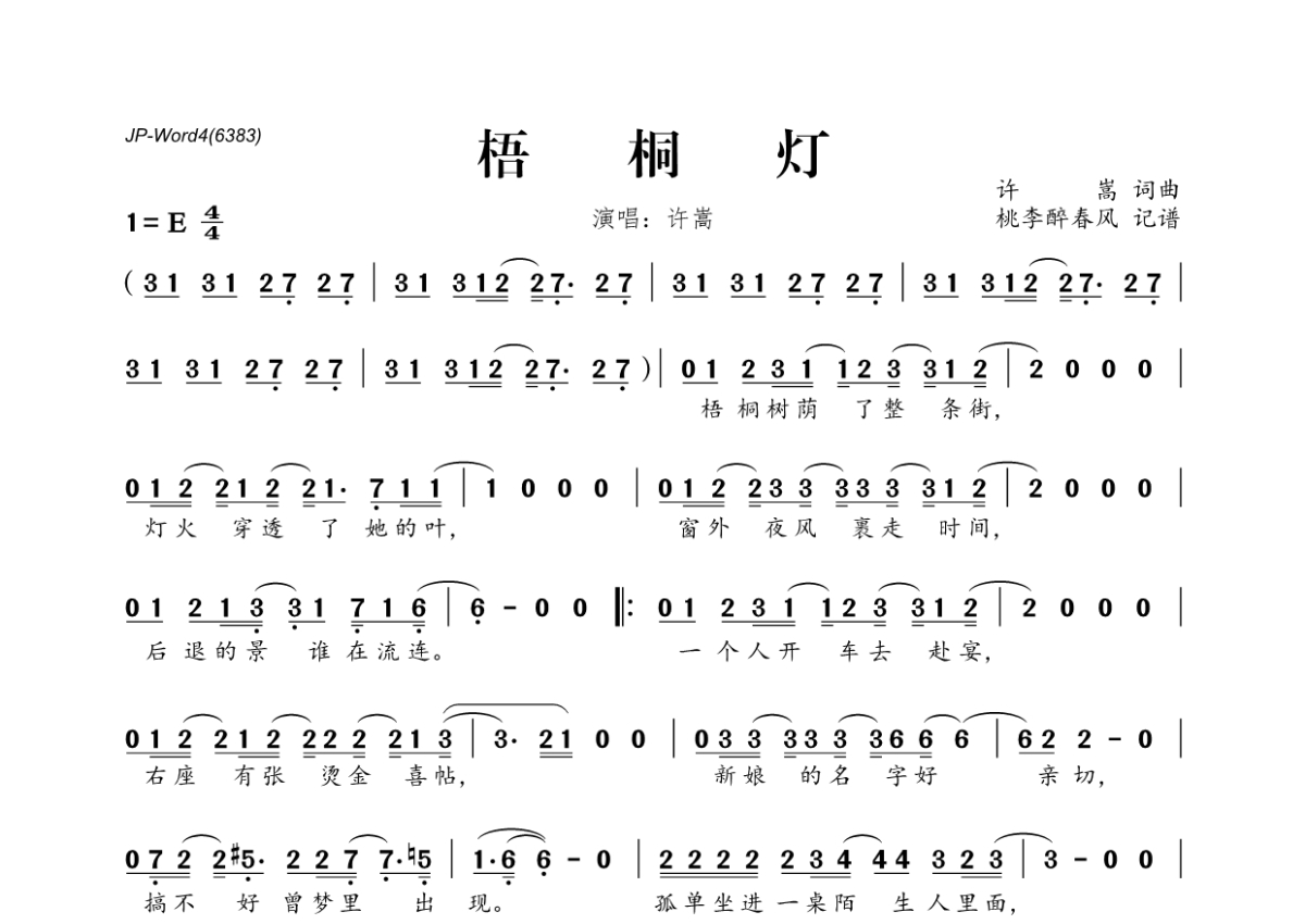 许嵩《梧桐灯》简谱