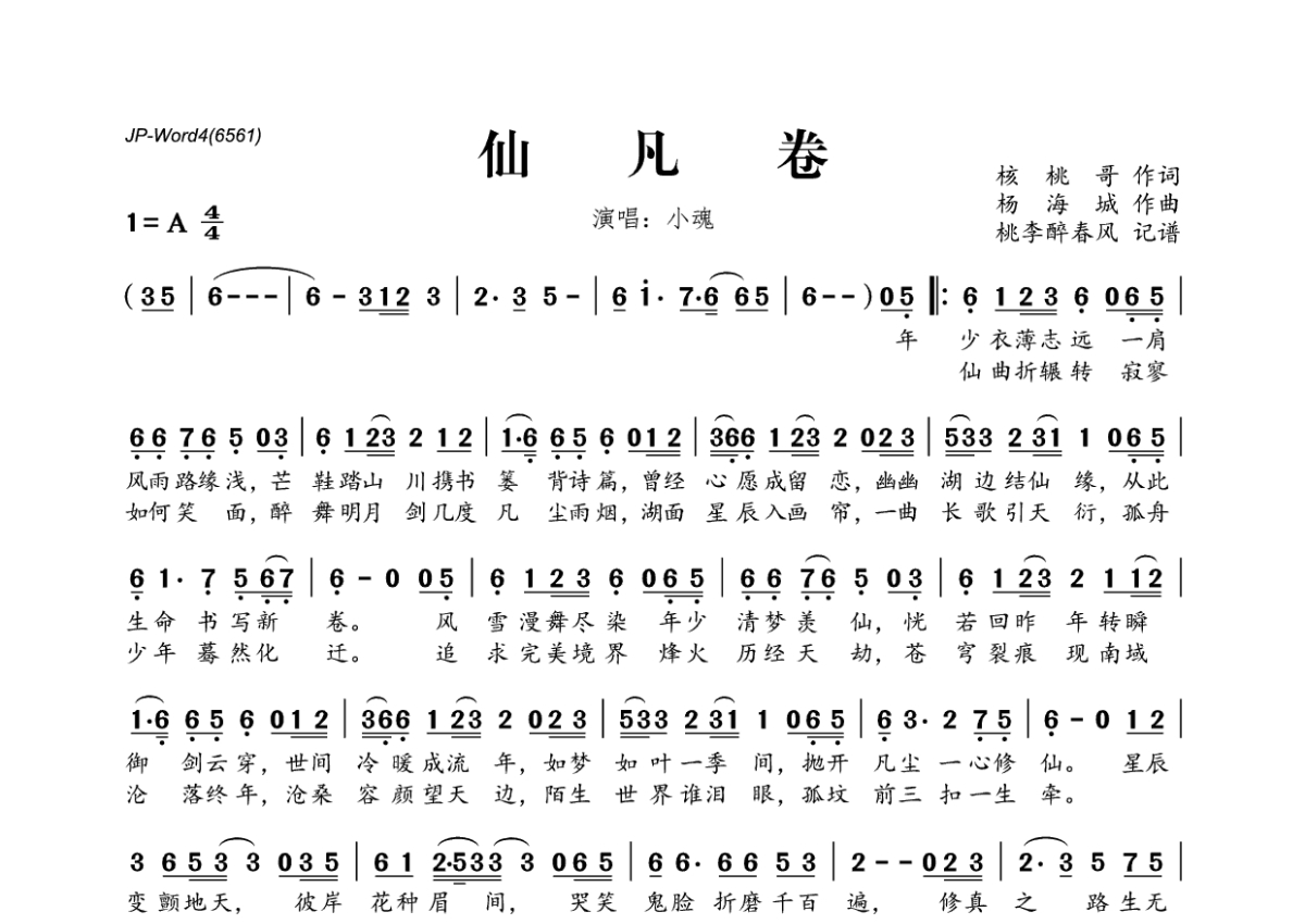 小魂《仙凡卷》简谱