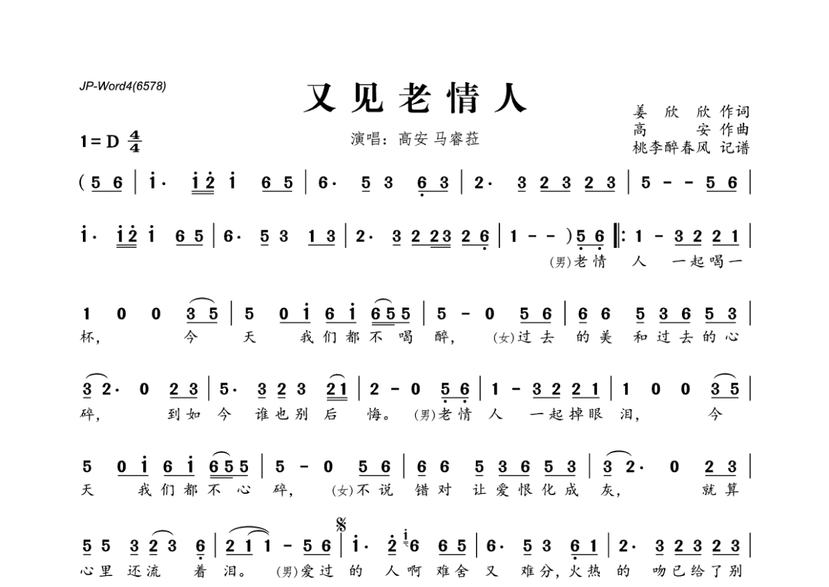 《又见老情人》是高安&马睿菈演唱的一首歌曲,拍号为4/4拍,这份简谱共有一张高清图谱,图谱由 @桃李醉春风 编配上传。