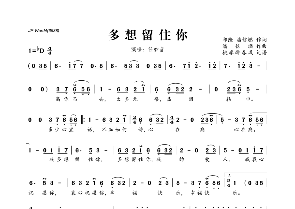 任妙音《多想留住你》简谱