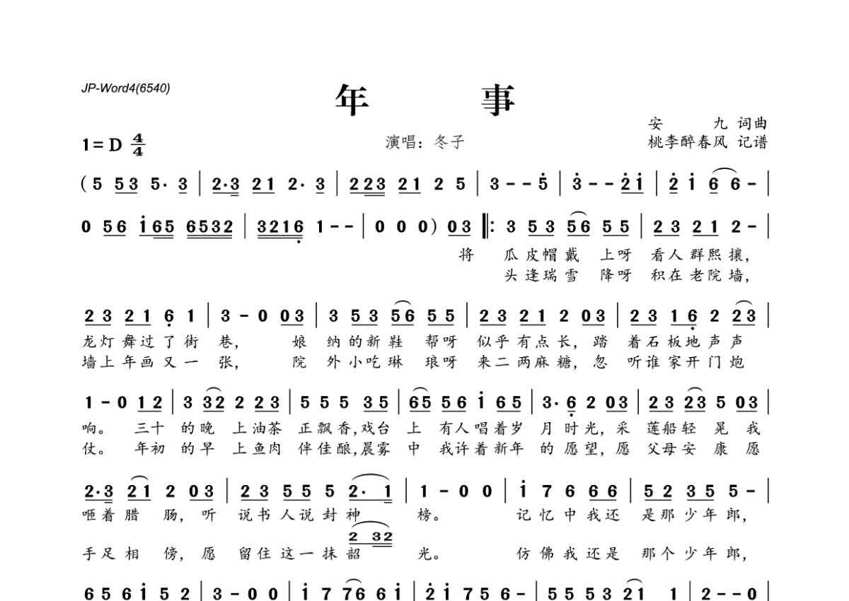 冬子《年事》简谱