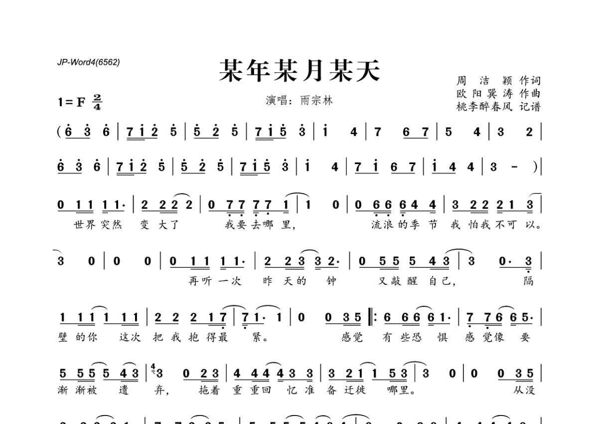 《某年某月某天》是雨宗林演唱的一首歌曲,拍号为2/4拍,这份简谱共有两张高清图谱,图谱由 @桃李醉春风 编配上传。