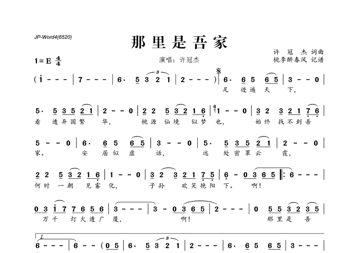 许冠杰《那里是吾家》简谱