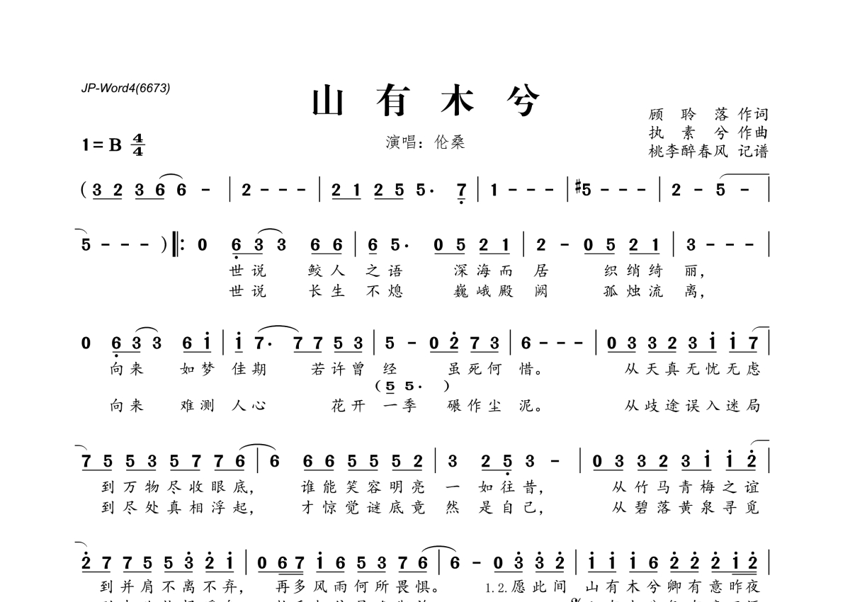 伦桑《山有木兮》简谱
