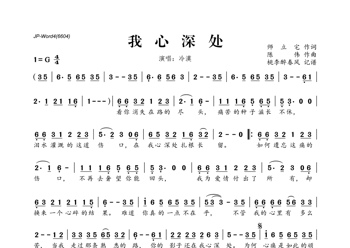 冷漠《我心深处》简谱