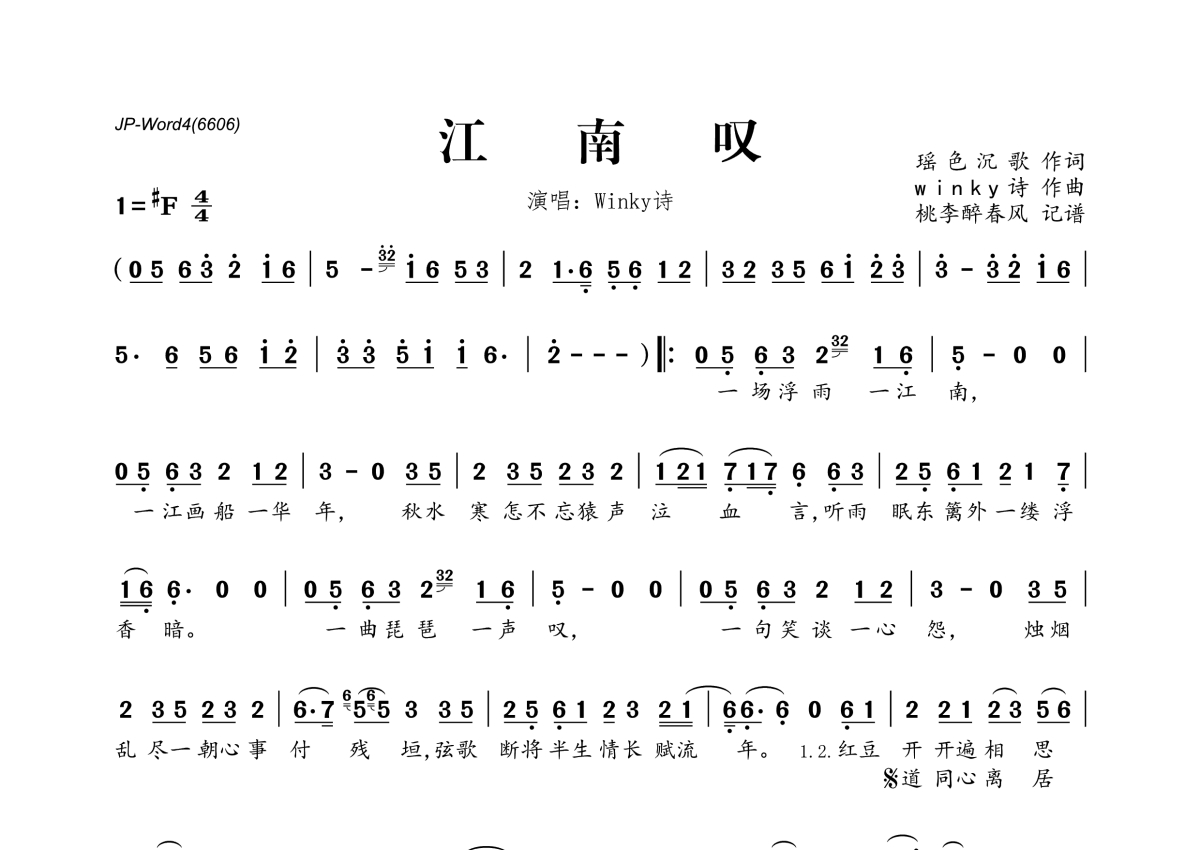 Winky诗《江南叹》简谱