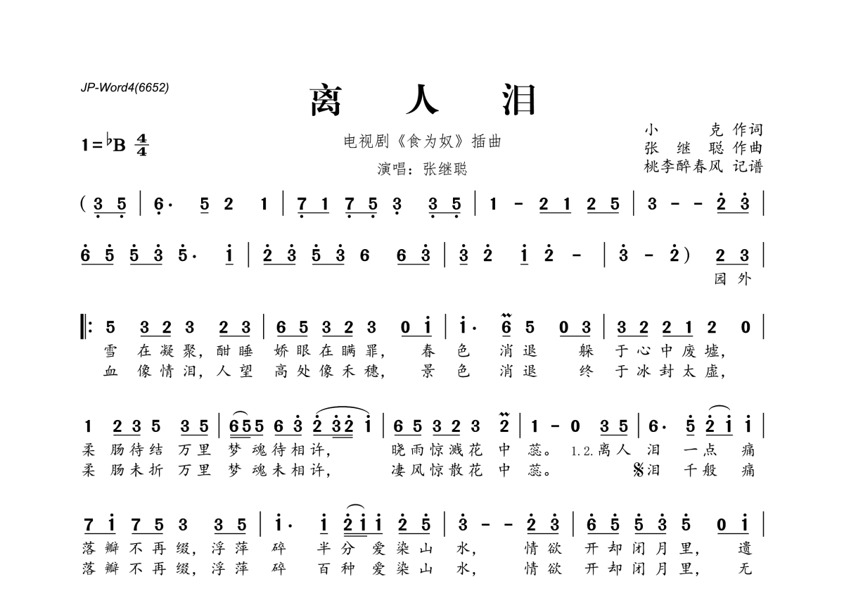 张继聪《离人泪》简谱