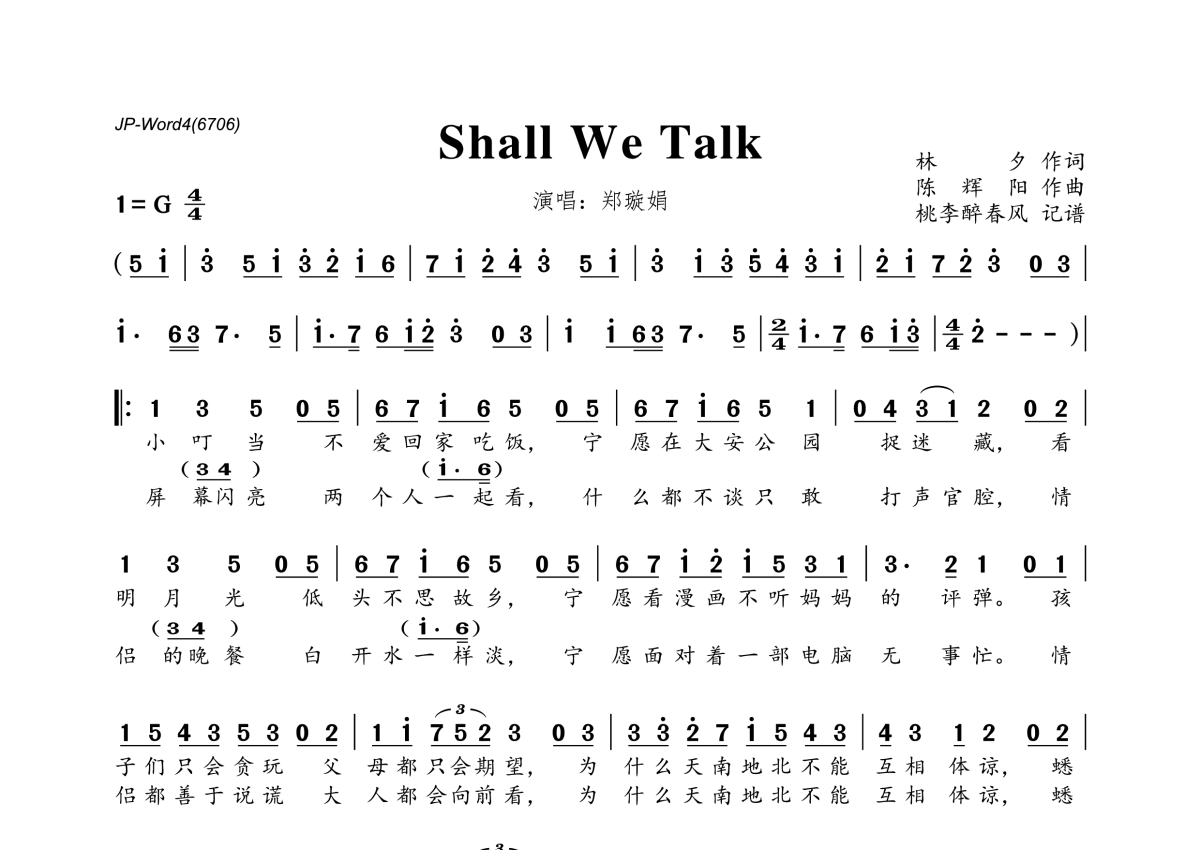 郑璇娟《Shall We Talk》简谱