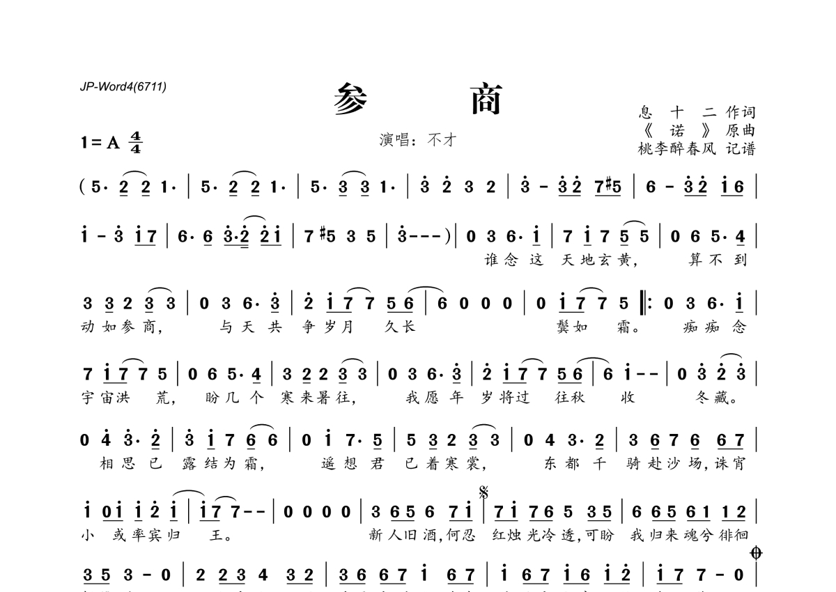 不才《参商》简谱