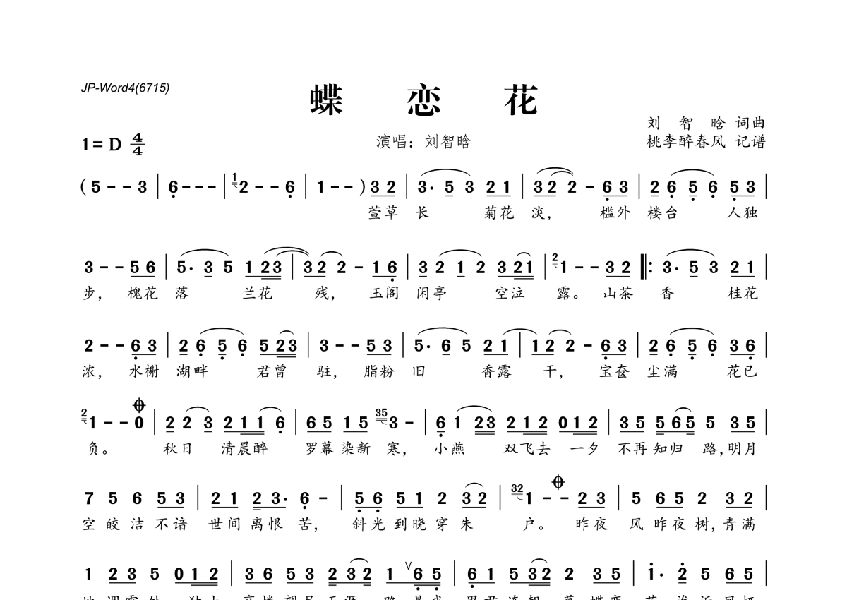 刘智晗《蝶恋花》简谱