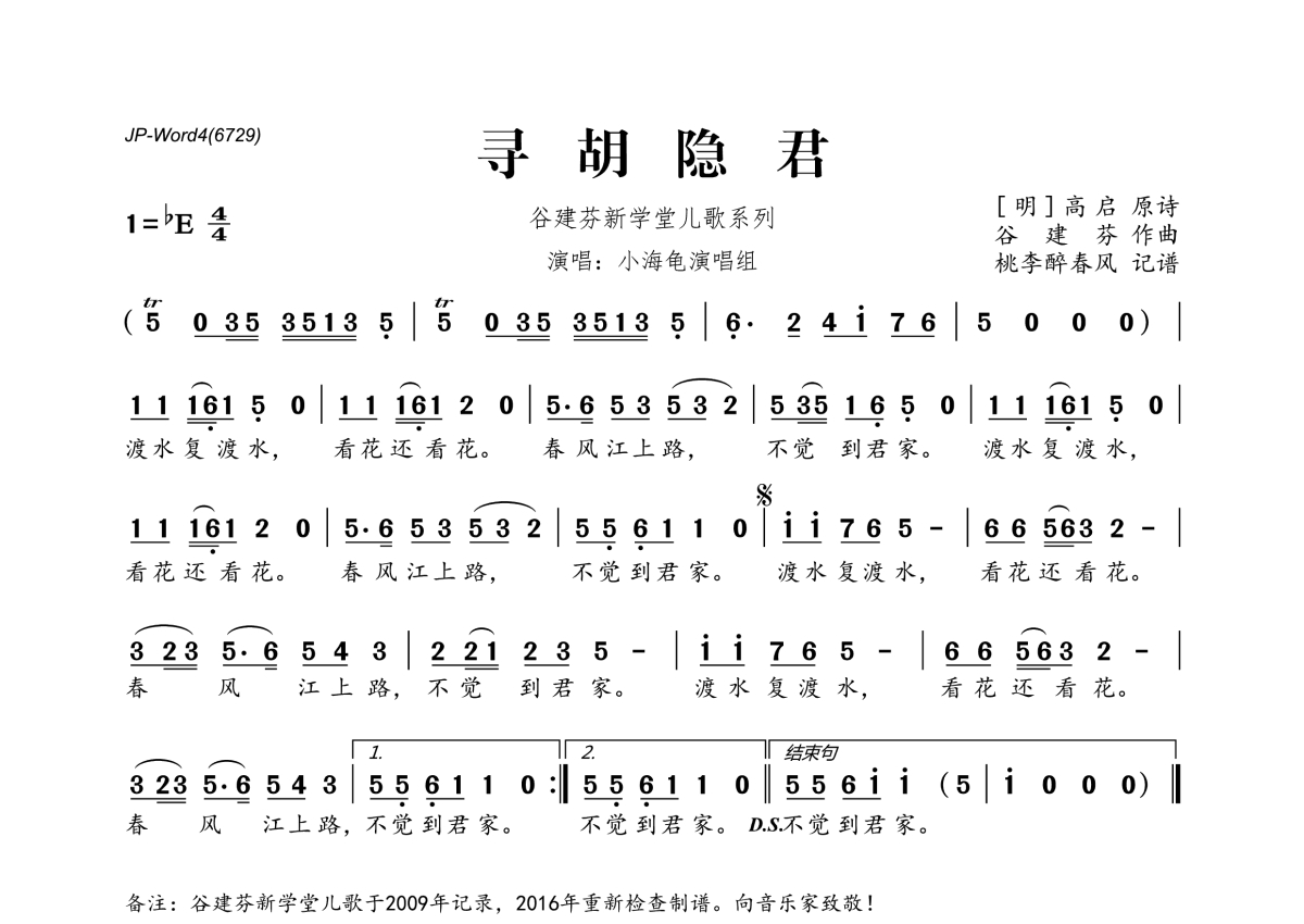 谷建芬新学堂儿歌系列《寻胡隐君》简谱