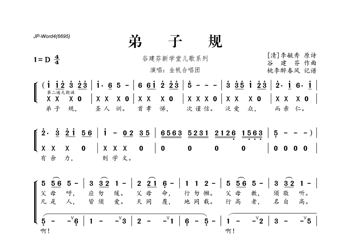 谷建芬新学堂儿歌系列《弟子规》简谱
